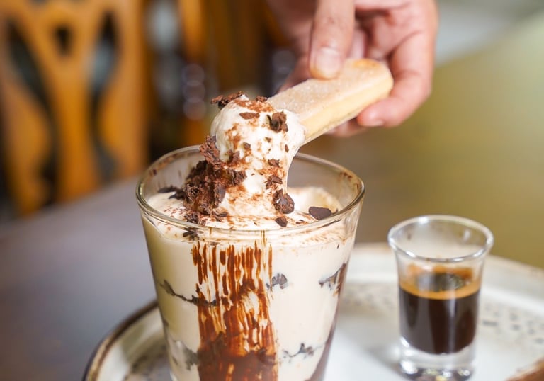 Savor our amazing desserts at Villa Toscana, featuring the timeless tiramisu for an amazing dining experience